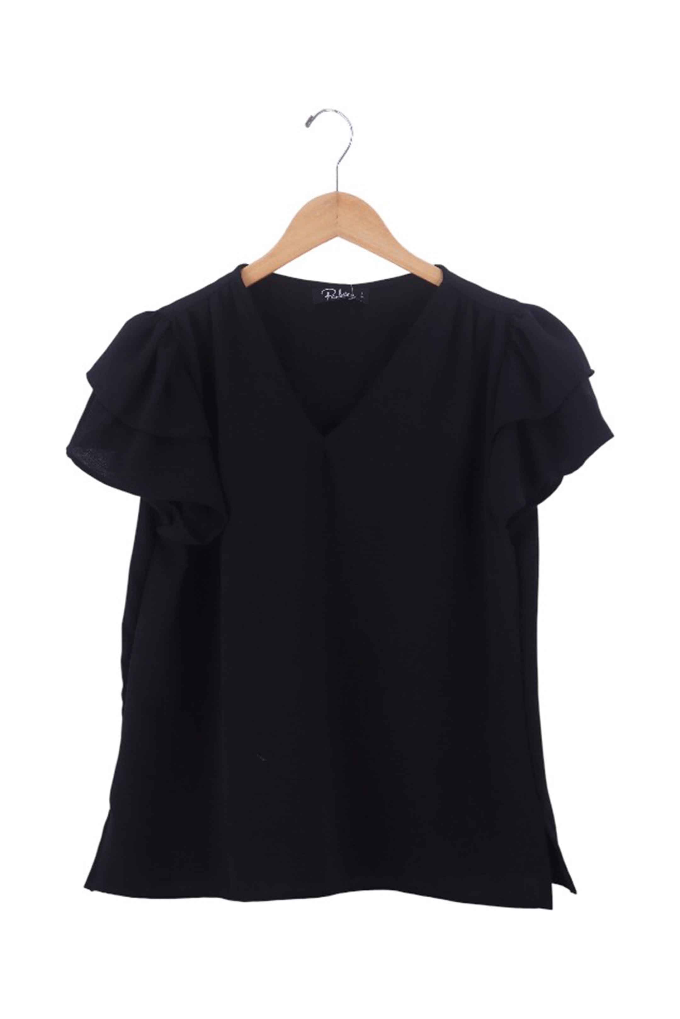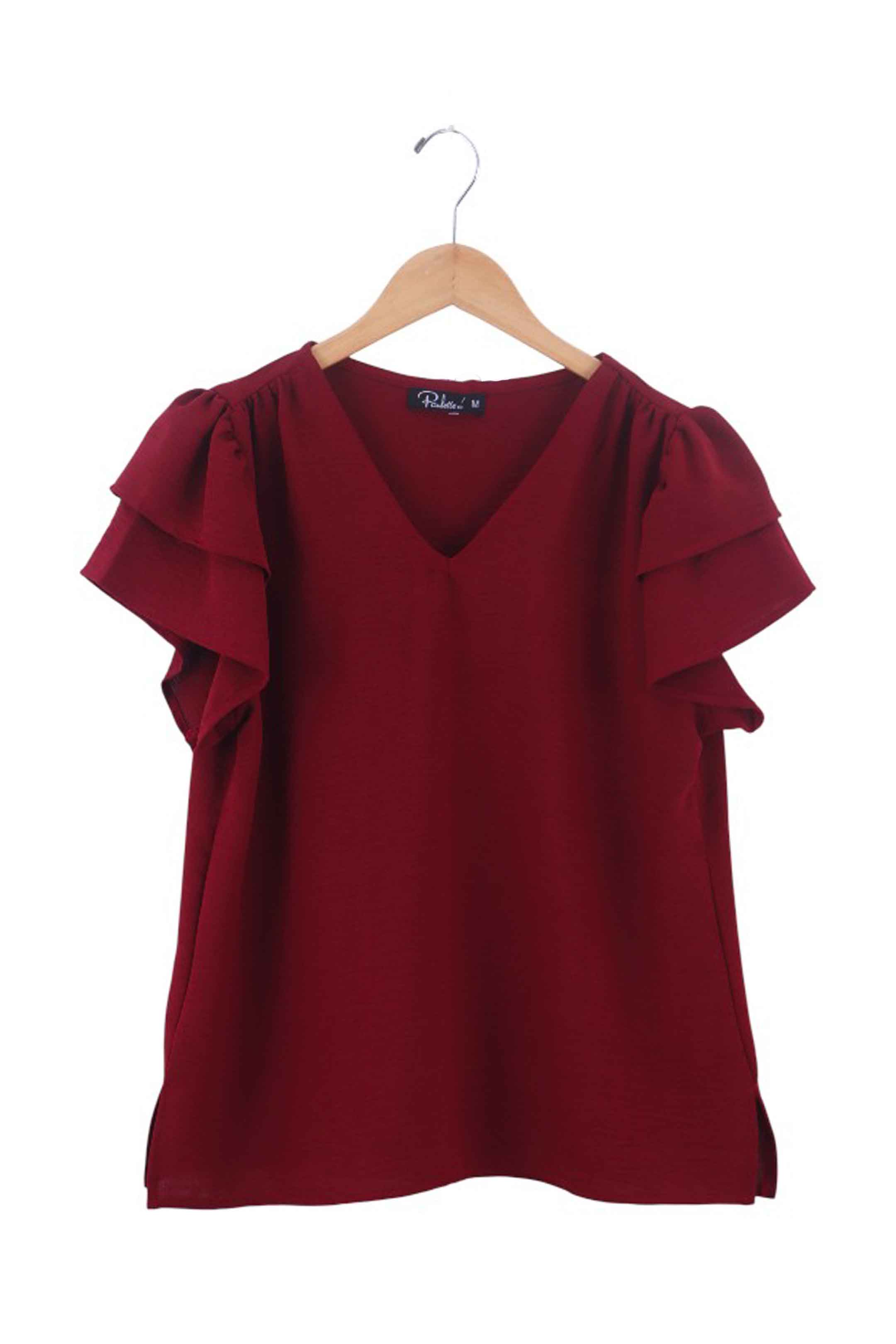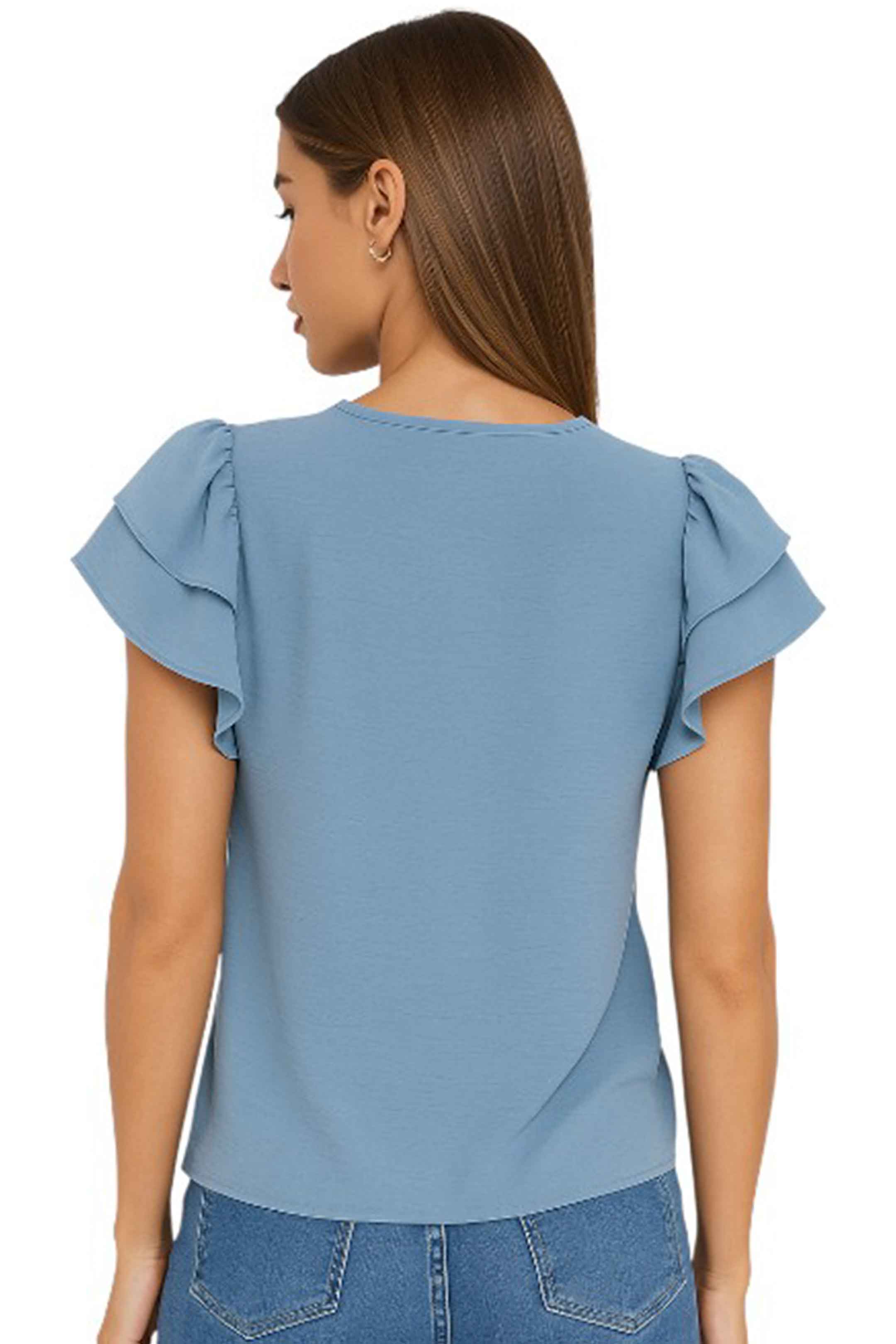 • Diseño de cuello en V y mangas cortas con doble volante
