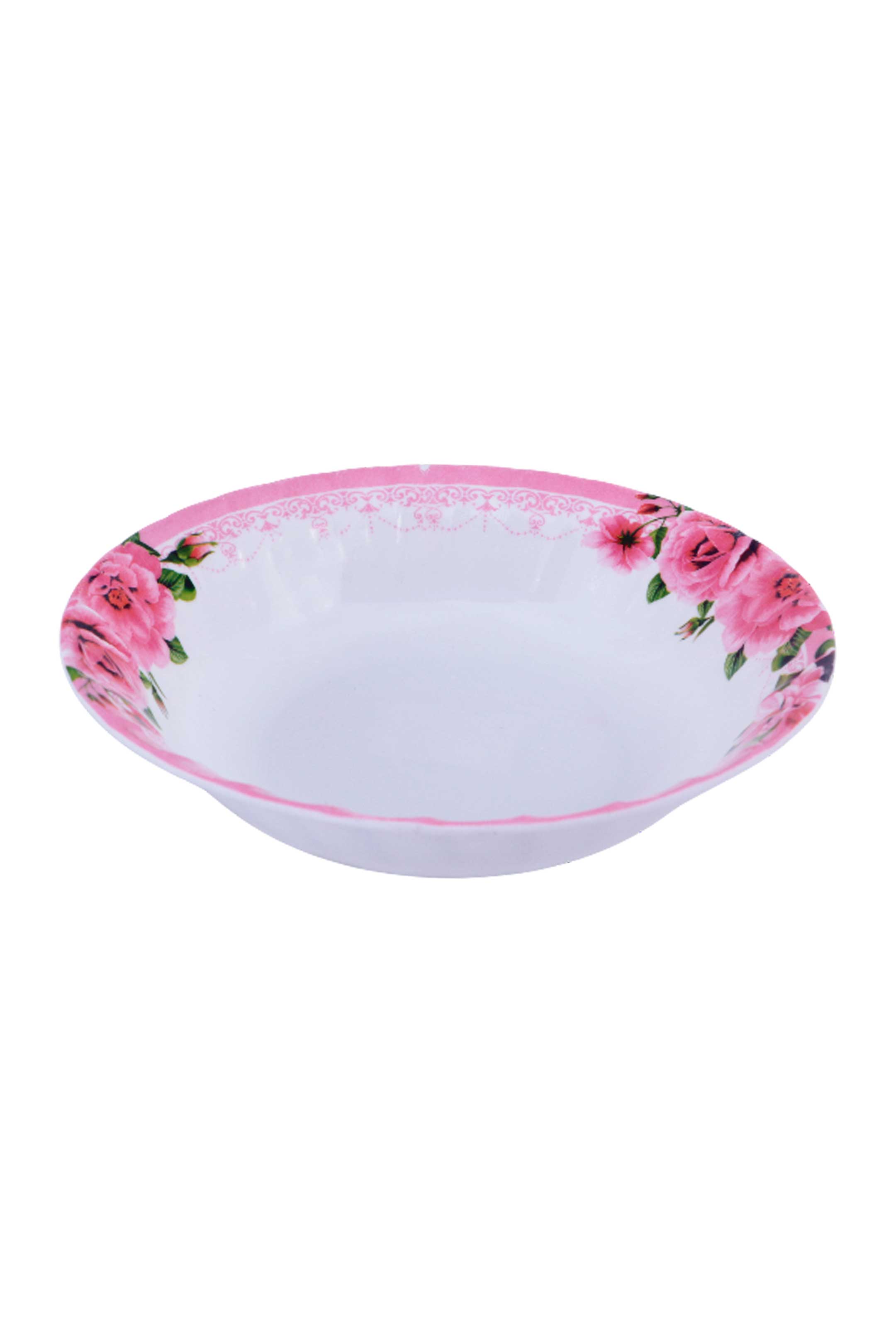 • Plato hondo con diseño de flores que combina funcionalidad y estilo en una pieza resistente y decorativa
