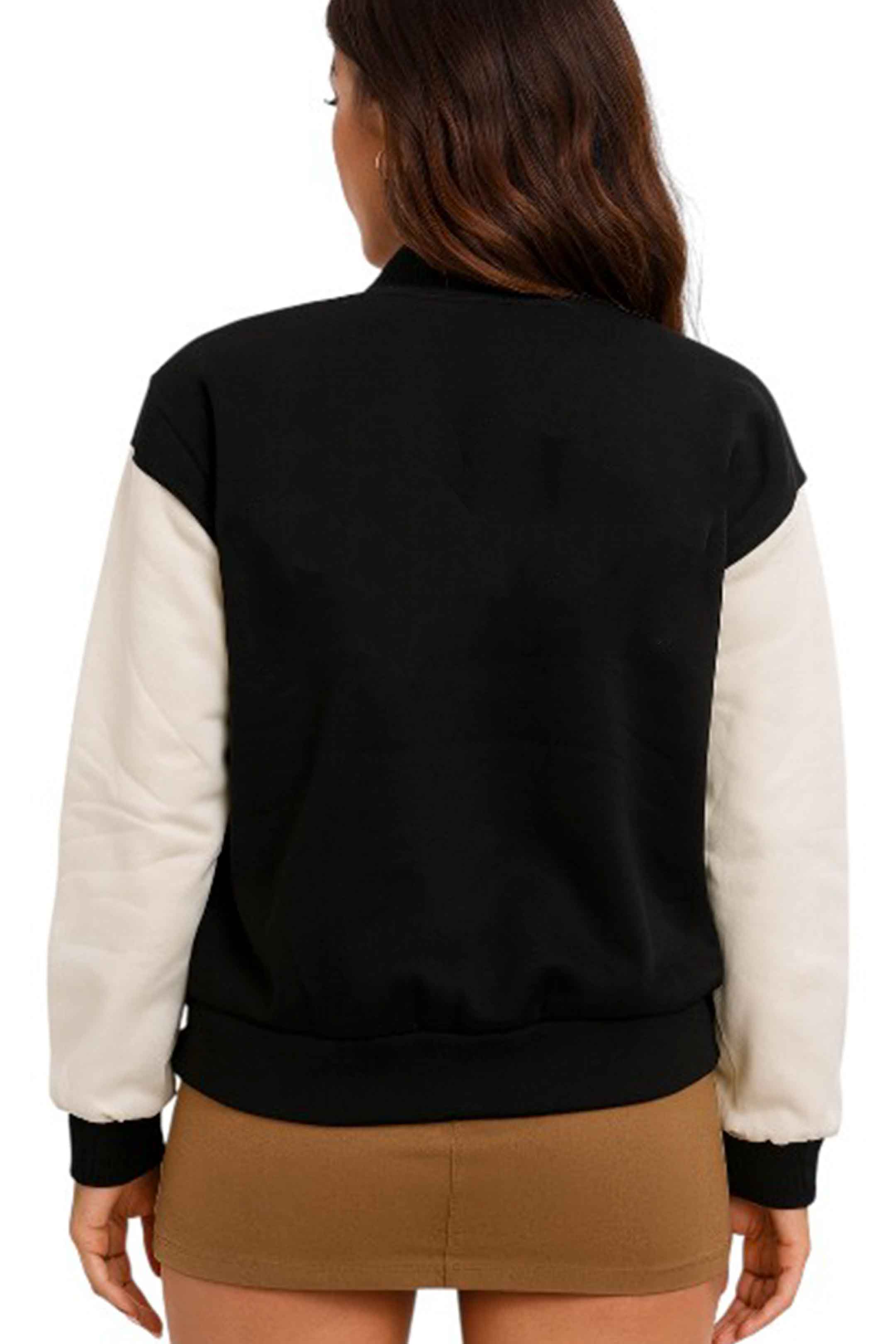 • Chaqueta tipo Varsity que resalta una estética deportiva