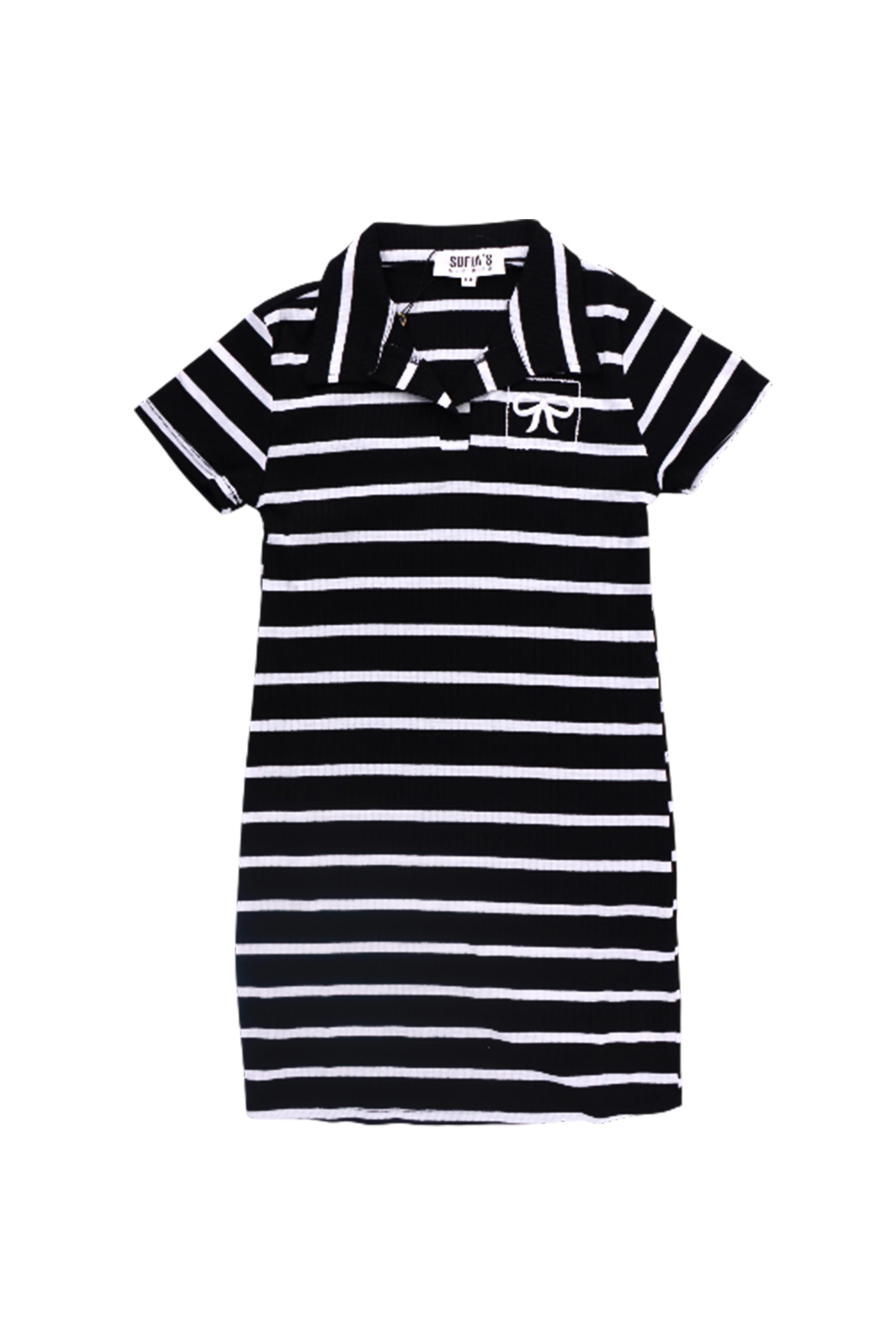 •Presenta cuello tipo polo y diseño con líneas horizontales