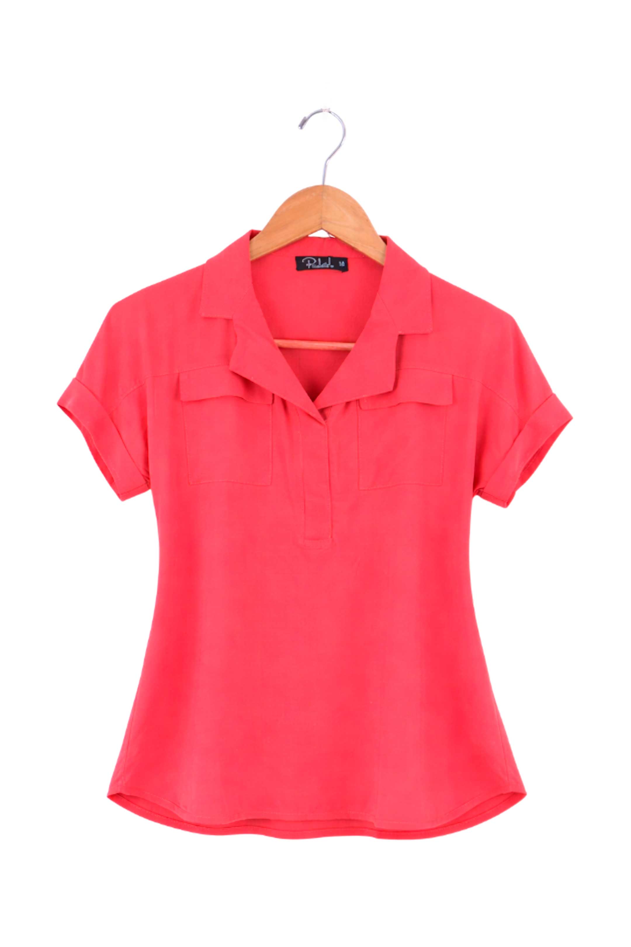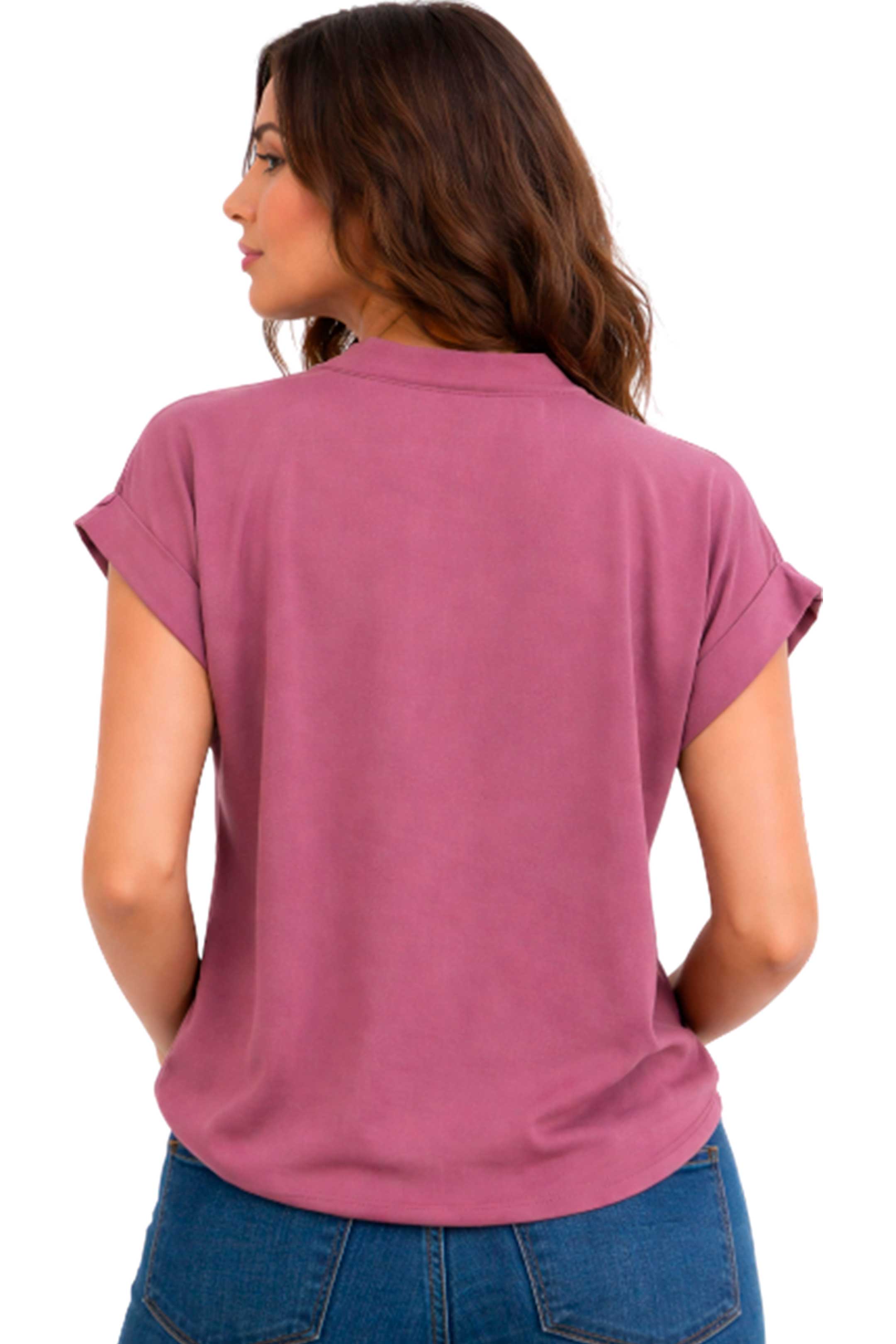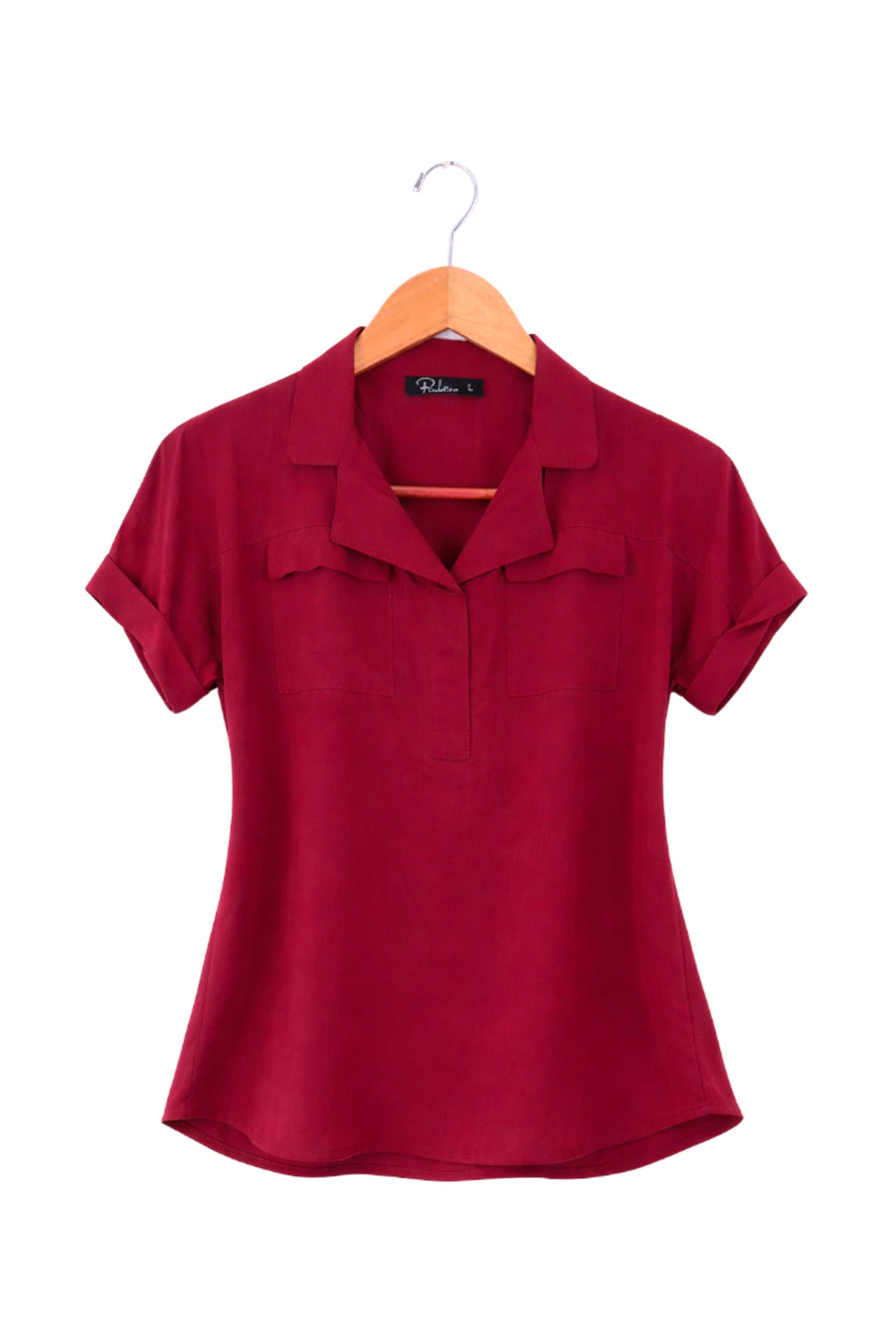 • Presenta cuello tipo camisero con escote en V, mangas cortas con dobladillo discreto y detalles de bolsillos al frente