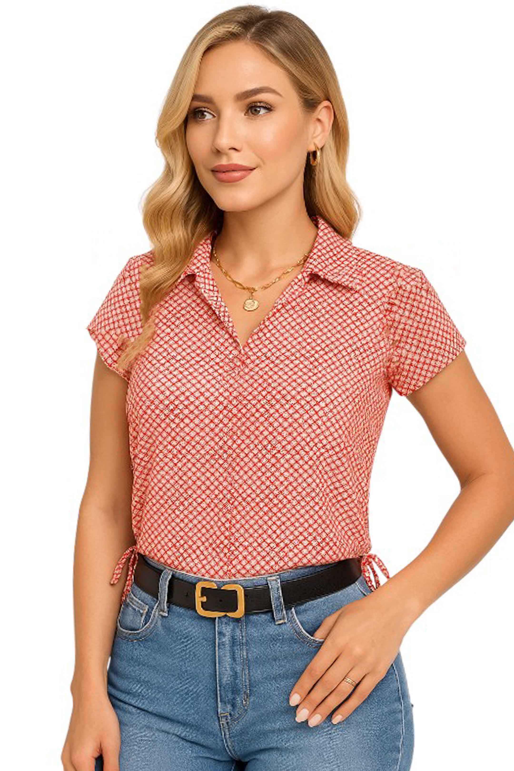 • Presenta un cuello tipo camisa con escote en V y botones al frente lo que le da un aire clásico