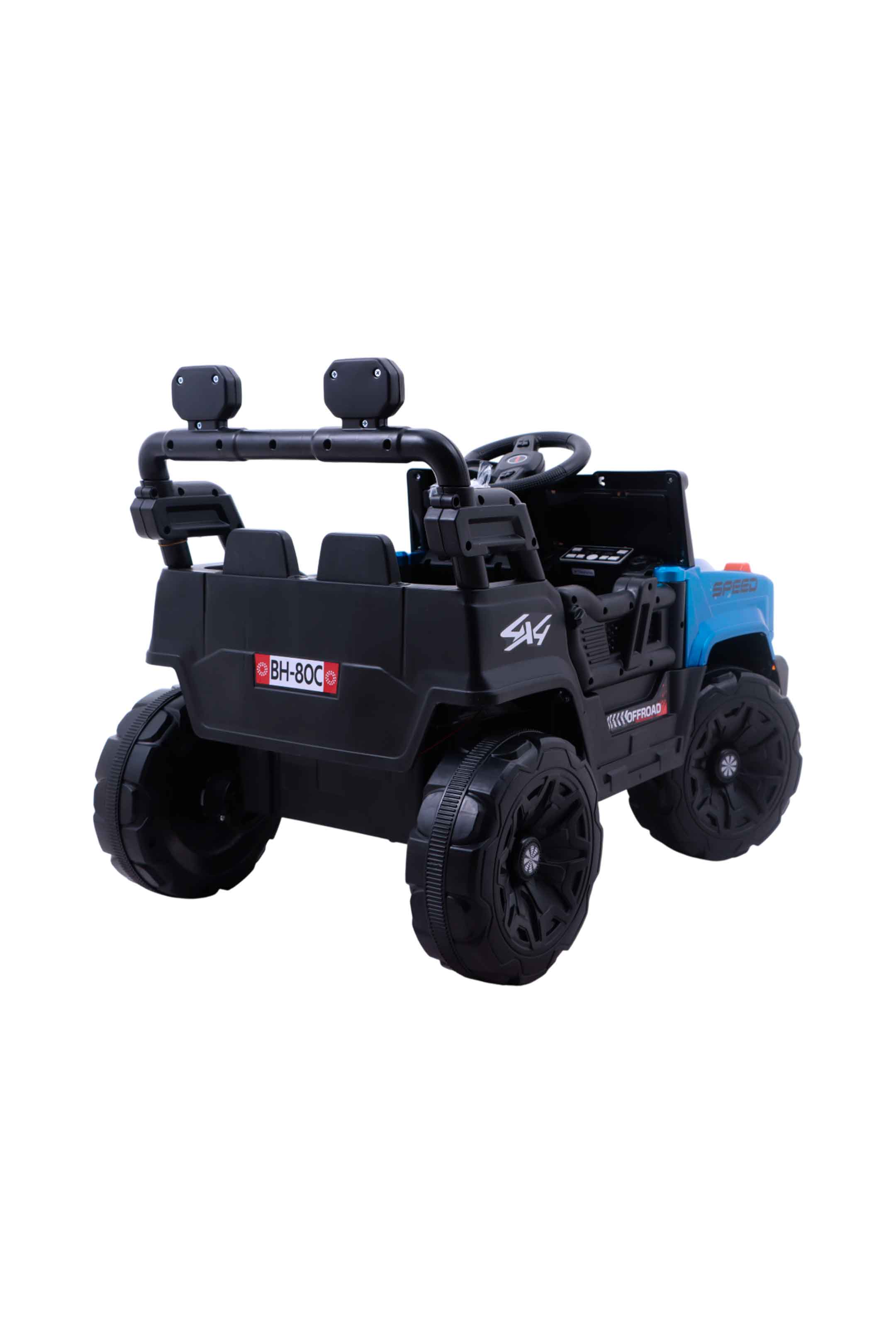 • Funciones: botón encendido/apagado, pedal acelerador/retroceso, botón controlador de acelerador y retroceso, música, entrada tipo C, botón con función mecedora, luces delanteras , puertas funcionales