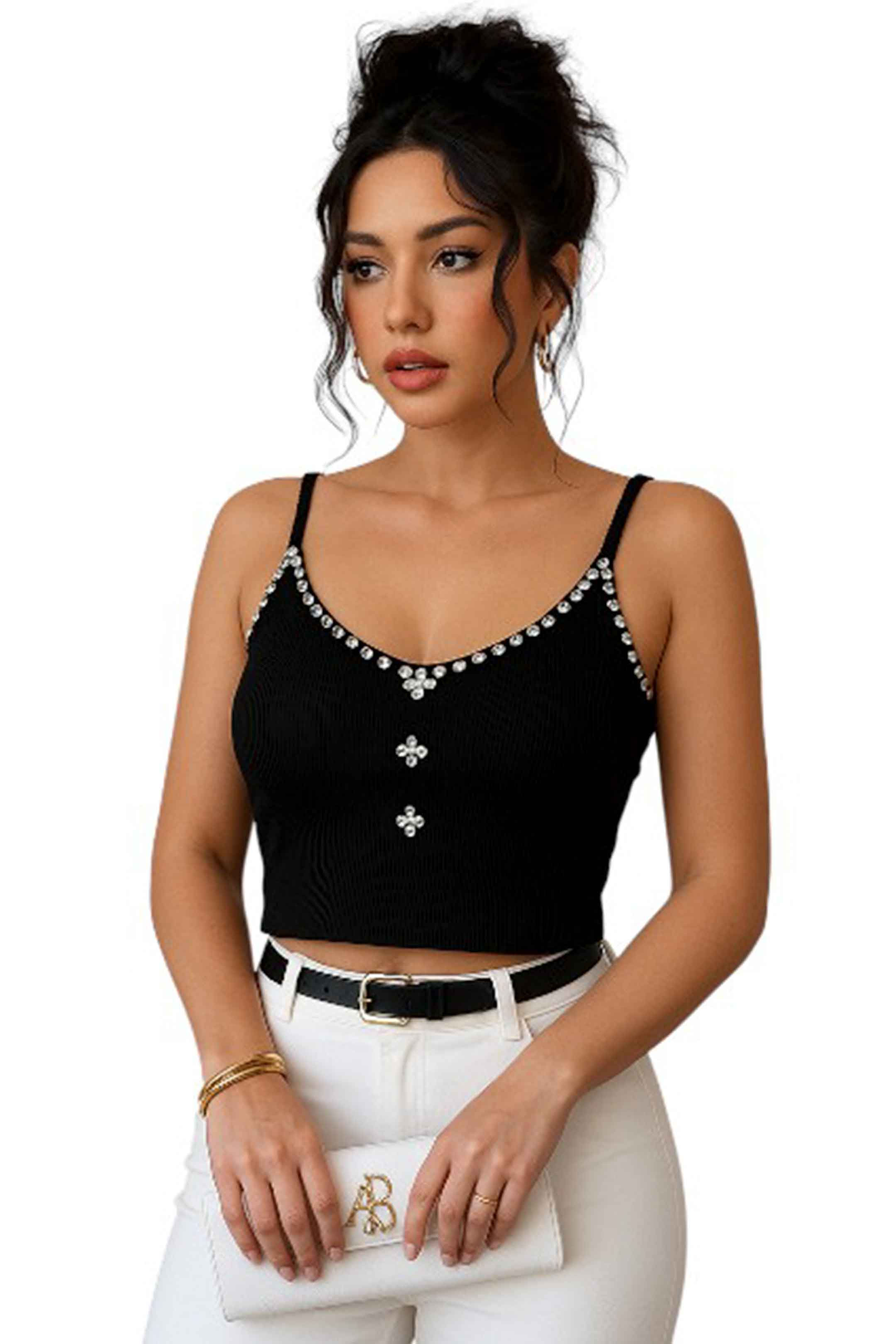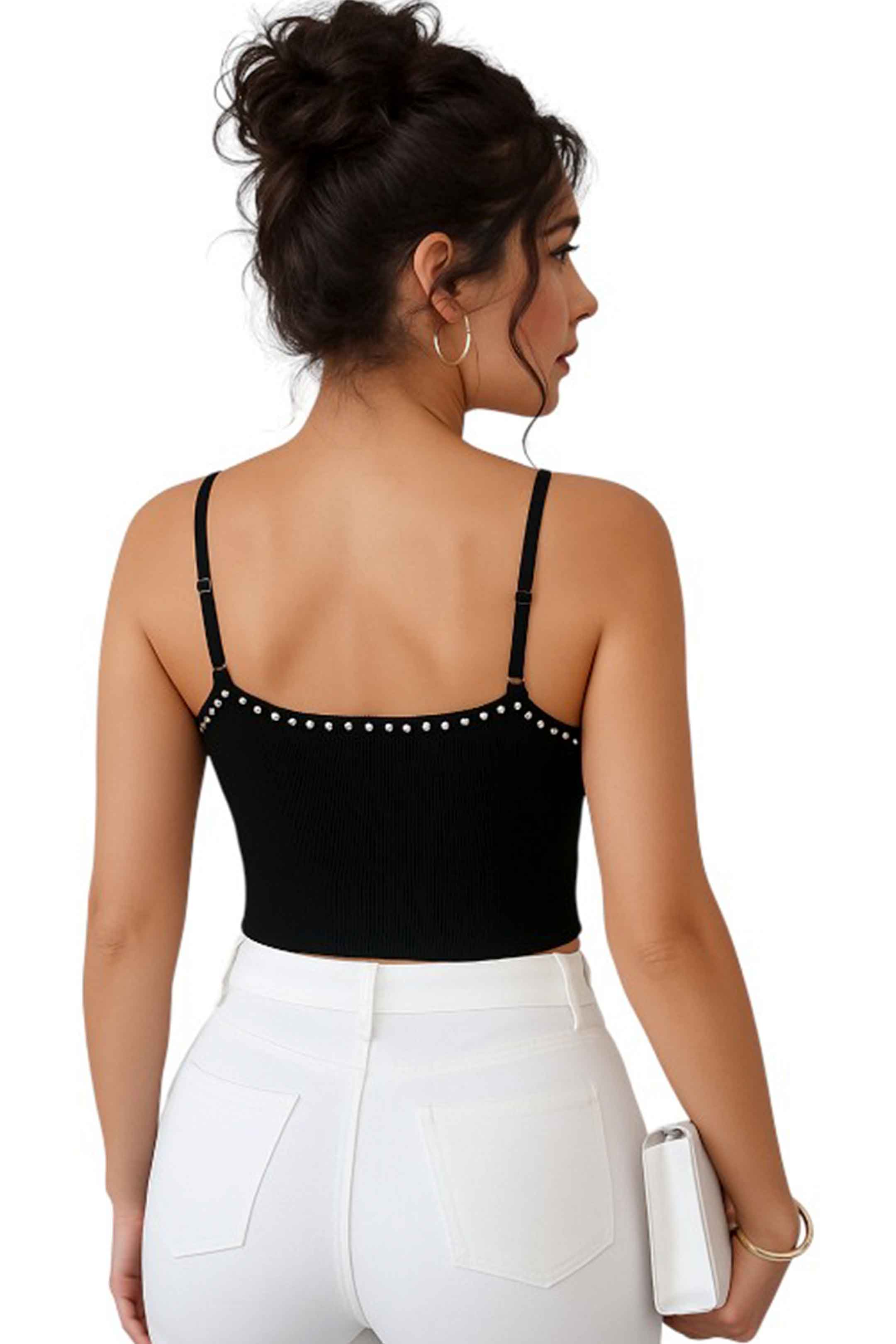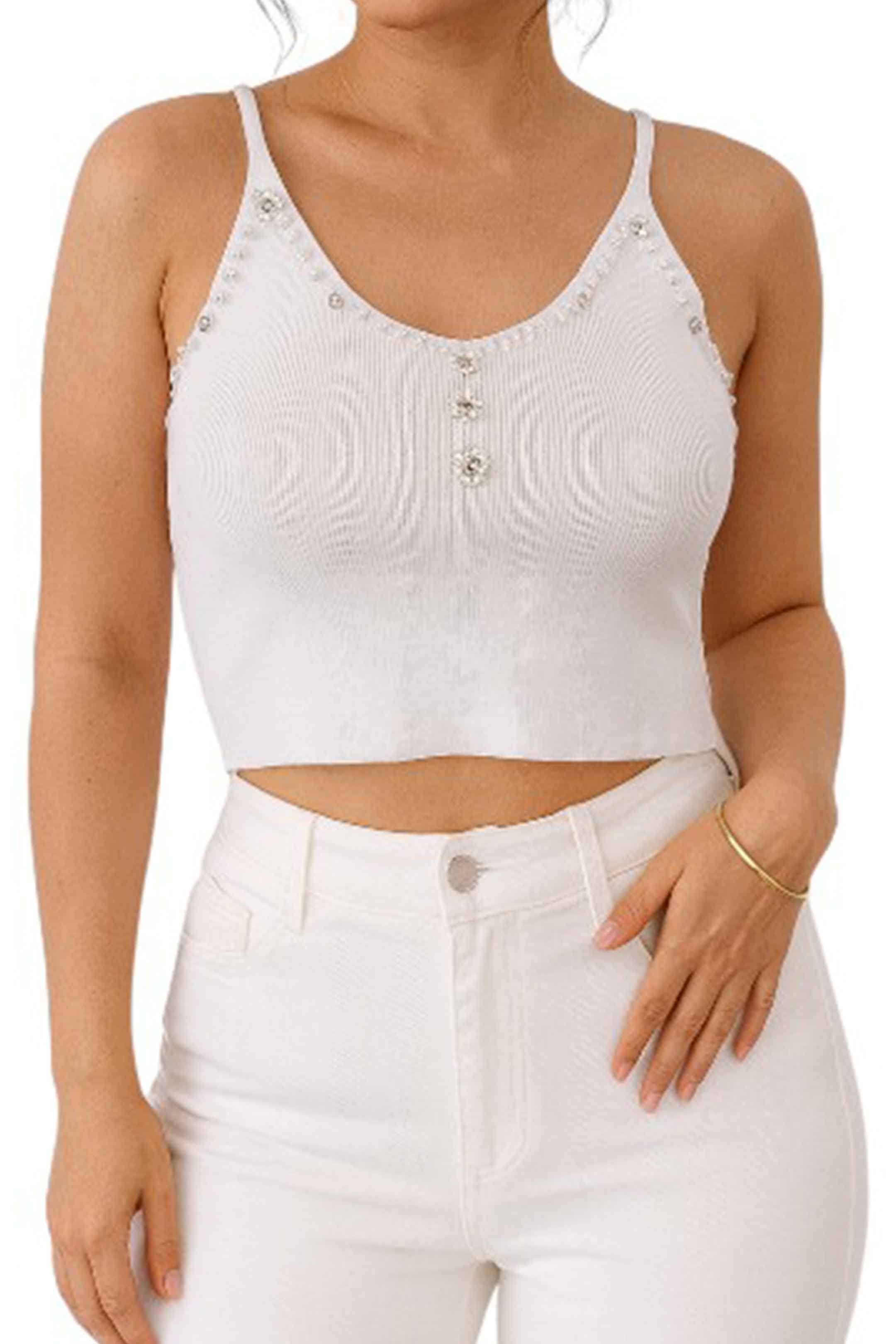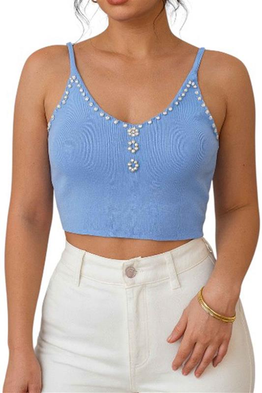 • Blusa de tirantes con detalle de perlas en la parte frontal