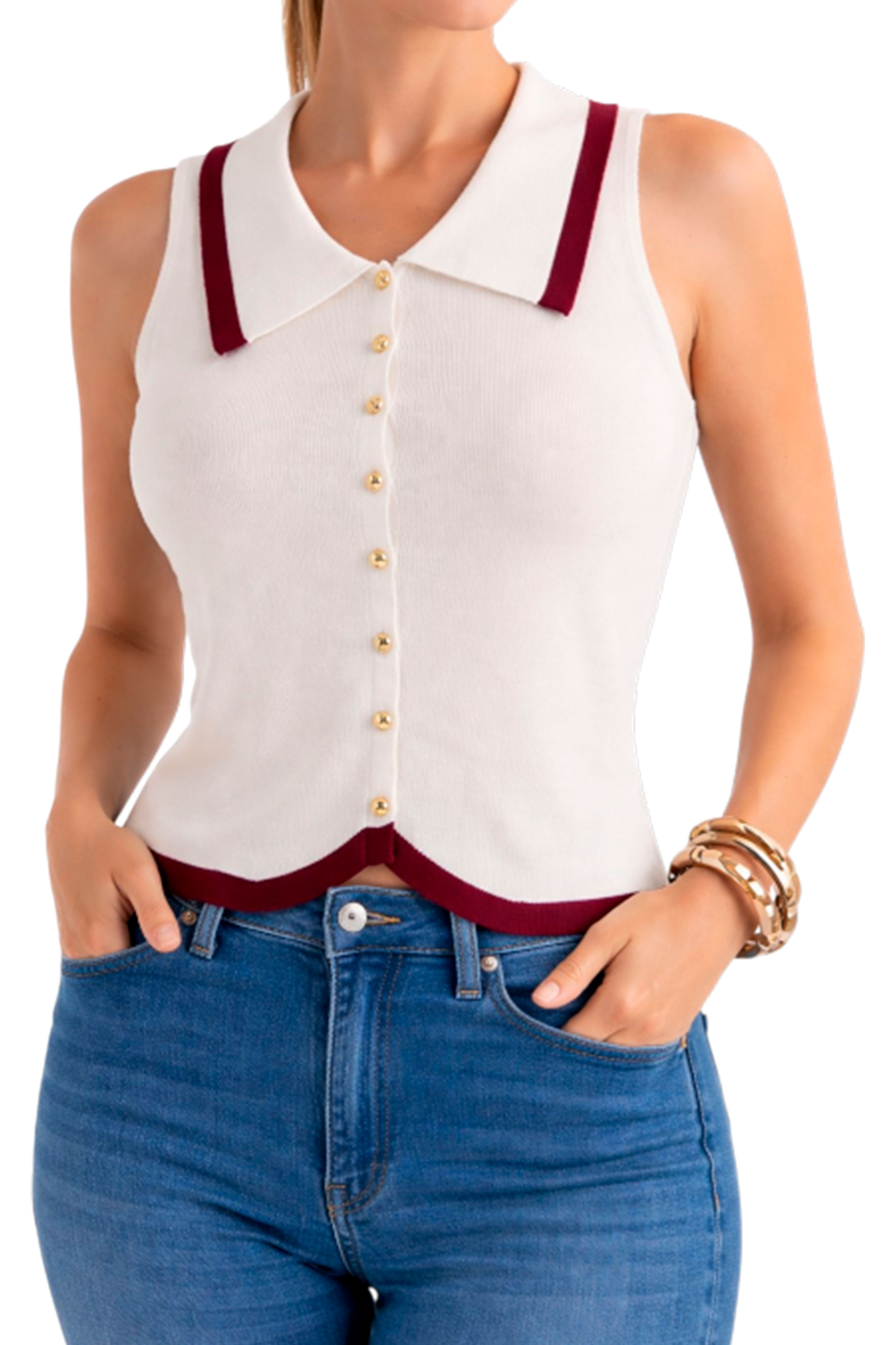 •Blusa con detalles blancos que se destaca por su diseño elegante